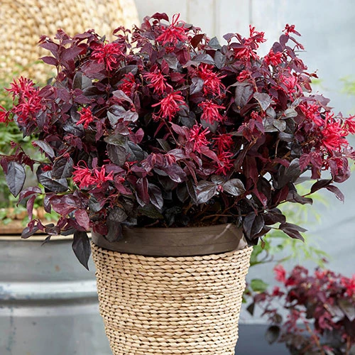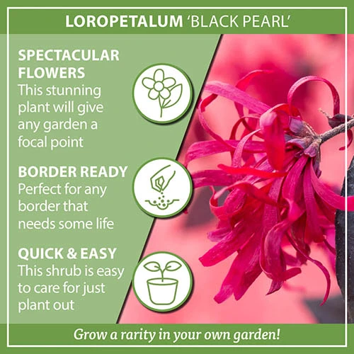 One of the most spectacular plants you can own and quite rare, with glorious, rich burgundy foliage and the most incredible fragrant flowers in early spring. Exploding like fireworks, the petals are like ribbons of vibrant pink. A wonderful treat during the coldest, darkest time of year.