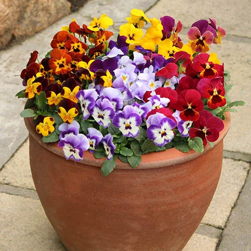 Offering a mixture of bright colours on this variety of Viola and one of our favourites. This is a true Viola and it has great tolerance to both heat and cold making it a reliable performer for the whole season. Plant some of these beauties into containers and ensure there is still loads of vibrant colour in your outside spaces whatever the weather.